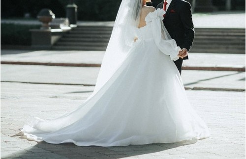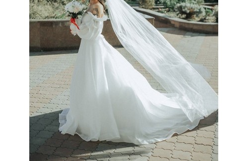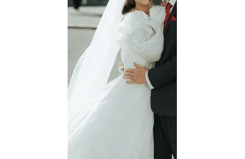 Продам свадебное платье размера 42-44 в отличном состоянии. Пышная модель на корсете с воздушными рукавами, так же рукава можно снять. Подходит на рост до 160+/- см. Надето один раз, без дефектов.