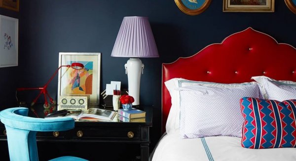 Синий цвет стен создает ощущение умиротворения и спокойствия. Несмотря на то, что он относится к холодным цветам, правильные комбинации с другими цветами и грамотное освещение обеспечивают его гармоничное существование в интерьере. Для маленьких комнат подойдет сочетание синего цвета с белым. Белый цвет и его оттенки визуально расширят пространство, а синий внесет в него свежесть. Чтобы интерьер не был слишком холодным, можно использовать оттенки синего, близкие к голубому и бирюзовому, и оттенки бежевого. Мебель в интерьере со стенами синих оттенков может быть нейтральной, под дерево или, наоборот, ярких контрастных цветов.