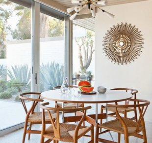 Вы любите космос, но не готовы жить в декорациях космической саги? И снова 60-е вам помогут. Для нужного настроения понадобится всего несколько ярких деталей — пара «лучистых» светильников, солнцеподобные зеркала и круглое кресло, в котором будущий агент Джей заполнял главный в жизни тест.