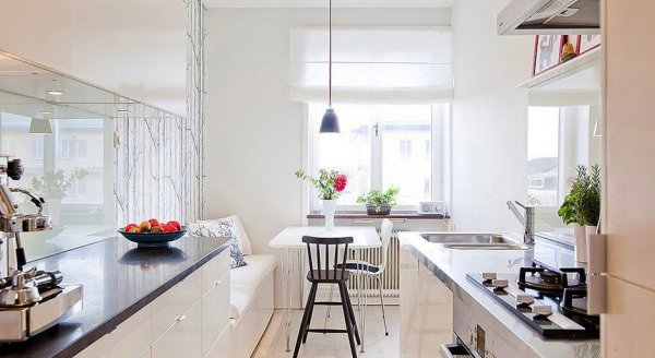 Существуют подозрения, что некоторые архитекторы, планируя многоквартирные дома, вовсе не задумываются о практической составляющей, а руководствуются принципом «и так сойдёт». А как ещё можно объяснить наличие в квартире длинной и очень узкой кухни, где не то что комфортно готовить, даже развернуться оказывается довольно сложно. Но если вы оказались в числе счастливых обладателей такой жилплощади — не расстраивайтесь, потому что у нас, как всегда, имеется пара-тройка отличных решений и советов, которые помогут сгладить насущную проблему и сделать вашу кухню уютной и функциональной.