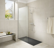 — Душевая кабина — отличный вариант для экономии места. Поддоны, выполненные строительным способом на уровне пола, могут быть облицованы напольной плиткой или мозаикой и визуально выглядят очень сдержанно, не «съедают» пространство. Чуть большая высота даёт шанс спрятать коммуникации, если нет возможности проложить их в полу. Настенные форсунки для подачи воды можно смонтировать на разном уровне в зависимости от роста всех членов семьи, даже самых маленьких. У некоторых производителей есть опции превращения кабинки в настоящую сауну — для этого она отделана специальными материалами и оборудована системами управления. Так что отдохнуть и расслабиться в душе вполне возможно!
