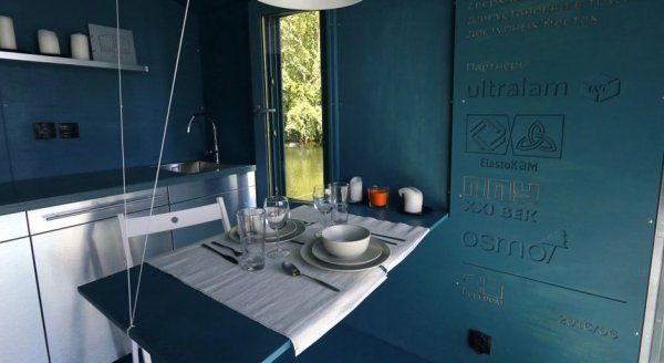 Если на земле запрещено капитальное строительство, то почему бы не подумать о временном сооружении? Заказчик этого диковинного домика решил, что на участке, расположенном у большой воды в национальном парке Слитере, обычные бытовки и вагончики будут смотреться чужеродно. А вот лодка - то, что надо! Несмотря на скромный внешний вид, домик вполне подходит для семьи с одним-двумя детьми. Миниатюрная кухня, спальные места и зоны хранения позволят всем обустроиться с комфортом. Автор проекта отмечает, что, применив современные материалы и оборудование и установив стеклопакеты с подогревом, летнюю постройку можно превратить во всесезонное жилище.
