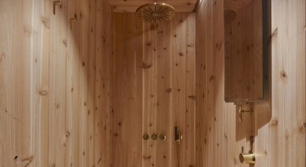 Интересный коттедж FlyBird Wagon был сконструирован в Белоруссии. Коробку собрали и отделали на производстве. После этого в готовом виде ее поставили на заранее построенный фундамент. «Скелет» дома представляет собой металлическую раму из швеллера высотой 24 см и деревянные стойки. Утепляли конструкцию по технологии напыления пенополиуретана. Для защиты от грызунов снаружи конструкции прикрепили стальной лист. В оформлении фасада использовали ЦСП и деревянные рейки. Изнутри каркас закрыли пароизоляцией, а затем отделали ОСП-плитами и ламинированной ДСП. Прихожая, кухня-гостиная, спальня и даже санузел с хаммамом - все это удалось распланировать на 45 м котел, водонагреватель, парогенератор для хаммама и автоматика «умного дома». В холода комфортный микроклимат создают конвекторы, водяные теплые полы и камин с системой воздушного отопления. А в летний сезон приятную прохладу генерирует мобильный кондиционер.