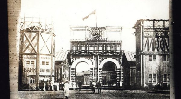 В 1936 году старую конструкцию на 50 метров сдвинули вправо по течению реки, а на его месте воздвигли тот самый Крымский мост, который мы хорошо знаем. Его ширина составила уже 38 метров.Увешанное лозунгами и афишами здание входной группы Парка тогда напоминало скорее ангар или ферму, так как было построено в 1922-м к открытию проводившейся здесь всероссийской сельскохозяйственной кустарно-промышленной выставки — между прочим, именно она стала прообразом ВДНХ.