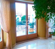 Дом и участок на 13 соток расположены по адресу Рублевское шоссе, д.60. В нём сделана полноценная система «умный дом» с управлением светом, музыкой, кондиционированием. Планировка: цоколь, 3 этажа, 5 спален, кабинет, библиотека, 2 террасы, гараж на 2 машины, площадка ещё на 3 перед домом.