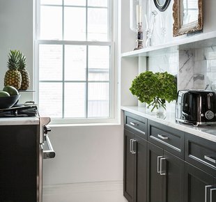 Главной задачей дизайнера было вернуть первоначальный облик жилища и сделать интерьер современным продолжением эстетики дома. Первым делом Лейфер вплотную занялся камином и окнами. Последние заменили на максимально приближенные к оригинальным, а неоготический камин расчистили от глянцевой краски и отделали материалом, внешне похожим на известняк — для сходства с камином в вестибюле дома. В целом квартира не нуждалась в глобальной переделке, поэтому обновить кухню, ванную, отделку и напольные покрытия удалось чуть меньше, чем за два месяца.