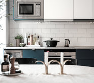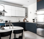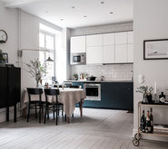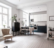 Обилием свободного пространства в гостиной этой двухкомнатной квартиры с балконом в Стокгольме в первую очередь обязаны перепланировке: стену между кухней снесли, что бы образовать жилую зону. В обновленном помещении сразу стало светлее: теперь здесь есть три окна плюс четыре пары точечных светильников в кухонной зоне – более чем достаточно, правда?