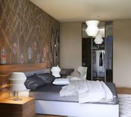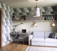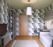 Архитектор Марина Бутусова нашла интересный способ ввести в интерьер цвет – в отделке стен использованы орнаменты, которые более часто встречаются в текстильных изделиях. Это шотландский «тартан» (так называют тот тип плетения тканей, из которого складывается шотландская клетка) и интернациональный пэчворк, лоскутное шитье.