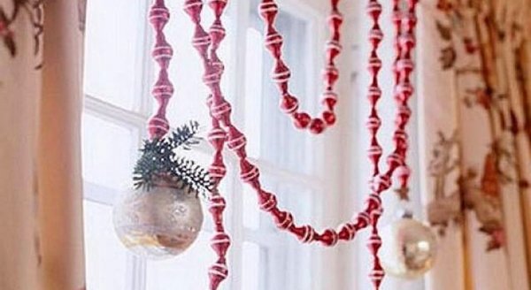 Простая сухая ветка, прикреплённая в верхней части окна, на время станет отличным элементом декора. На ней хорошо развешивать любые гирлянды, снежинки, игрушки.
