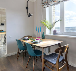 Владельцы квартиры будут проводить здесь лишь пару дней в неделю, поэтому для бюджетного ремонта использовали отделочные материалы из «Леруа Мерлен» и мебель из ИКЕА. Владельцы квартиры не живут в Егорьевске постоянно, но периодически им приходится задерживаться в подмосковном городе из-за работы. Поэтому и понадобилась гостевая квартира, где можно расслабиться после тяжелого дня и почувствовать себя как дома. Дизайнер Анна Морозова подобрала мягкие успокаивающие оттенки и простую обстановку, взяв за основу скандинавский стиль. Она отмечает, что «интерьер не перегружен декором и цветом, излучает легкость, естественность и простоту». Поскольку ремонт нужно было сделать максимально экономично, от перепланировки отказались. При этом над организацией пространства дизайнер все же поработала: увеличила санузлы и расширила коридор при входе, а дверь в гостиную сместила в центр, что упорядочило пространство. Два входа на кухню – из коридора и соседней гостиной – были в проекте изначально. «Хозяйка не захотела это менять, – делится дизайнер, – поэтому практически не оставалось места для обеденной зоны и полноценной столешницы, комфортной для приготовления пищи».Решением стала П-образная планировка с барной стойкой, где нашлось место для всего необходимого. А визуально расширить пространство помогли зеркала. Хотя владельцы квартиры будут появляться здесь лишь наездами, Анна Морозова все же предусмотрела вместительную систему хранения. В холле с обеих сторон от входа появились шкафы, еще один трехметровый шкаф во всю стену установили в спальне. Большую часть мебели для проекта нашли в каталоге ИКЕА. Она отвечает требованиям экономичности и практичности. Дизайнер признается, что хотела «создать максимально простое, лаконичное, светлое и уютное, не утомляющее глаз пространство, в котором будет легко и приятно восстанавливаться после напряженной работы». Но получившийся скромный интерьер по функционалу не ограничен только редкими ночевками. При желании здесь вполне можно принимать гостей. Для этого в гостиной предусмотрели большой стол на восемь персон и раскладной диван. Планировка Эскизы Фото квартиры до ремонта : спальни, гостиные, детские, прихожие и другое Кредит наличными за 5 минут Фамилия, Имя, Отчество Мобильный телефон Электронная почта Желаемая сумма кредита, Р Укажите сумму от 50 000 до 1 000 000 Р Срок кредита, месУкажите срок от 3 до 36 месяцев Цель кредита Цель кредита Цель кредита Ремонт Учеба Покупка автомобиля Лечение Погашение долгов (не кредиты) Погашение кредитов Шоппинг Путешествие Торжество Помощь близким Иное Пока не определился 15%к вероятности одобрения за выбор цели кредита Получите 37% к вероятности одобрения кредита, заполнив 1-й шаг Я принимаю условия передачи информации www.aminteriors.ru