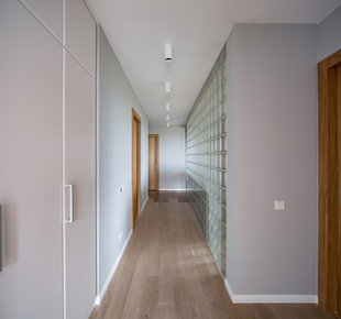 Системы хранения продумали с особой тщательностью: заказчик любит, когда все вещи расположены на местах. Так, в прихожей появилась гардеробная комната, возле спален – просторный шкаф, в котором удобно хранить постельное белье или сезонные вещи.