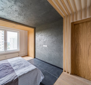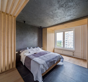 Реечные конструкции – главная фишка этой квартиры: они смотрятся очень современно и добавляют тепла в минималистский интерьер.