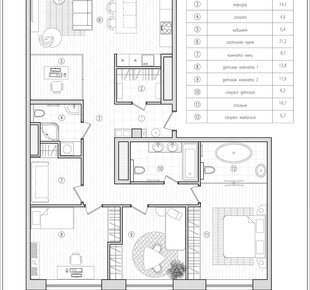 Центральную часть квартиры, где нет окон и недостаточно естественного освещения, тоже можно эффективно использовать. Достаточно установить стеклянную перегородку и сделать отверстия в стеновых панелях Интерьер этой квартиры в ЖК «Резиденции Сколково» будто создан при помощи линейки и циркуля. Стены гостиной напоминают воздушно-пузырчатую пленку, с легкими акцентами уже «лопнувших» пузырьков. Авторы дизайн-студии Kameleono, Павел Личик и дизайнер Анастасия Иванова, повторили этот декоративный прием и в стеклянных перегородках рабочего кабинета заказчика. Он расположен в центральной части квартиры, поэтому свет в него проникает через стены с круглыми отверстиями. Владельцы квартиры относятся к вещам исходя из их практической пользы, обращают внимание на качество и долговечность. Они выбрали для себя стиль минимализм как хороший способ избавить свою жизнь от хлама. Поэтому вместо замысловатых форм и декора, акцент сделан на геометрию и фактуру отделочных материалов. «Интерьер получился монохромным, с оттенками черного и серых цветов, но при вечернем освещении благодаря теплому спектру осветительного оборудования интерьер становится чарующе комфортным», – комментирует Павел Личик. Для проекта ограничились минимально необходимым комплектом мебели: вся она имеет правильные геометрические формы и максимальный функционал. Например, шкафы в детских комнатах, являются продолжением стен, а в спальне полуметровые стеклянные двери напротив кровати скрывают за собой вместительную гардеробную. Керамогранит в отделке фартука кухни «перетекает» на встроенный кухонный шкаф с техникой и заворачивает на стены прихожей и вместительной гардеробной комнаты при входе. В отделке фасадов восьмидесяти сантиметровых выдвижных ящиков кухни используется алюминий, столешница из искусственного камня. Навесные верхние шкафчики со встроенной подсветкой оснащены подъемным механизмом, открываются и закрываются при нажатии автоматически. Акцентным композиционным пятном стали две хромированные вытяжки — они придают интерьеру блеск и завораживающие отражения. При минимуме декоративных элементов и аксессуаров необычно и ярко выглядит панно из реек за изголовьем кровати в спальне. Оно имитирует коралловый риф с маленькой пугливой рыбкой, над которой безжалостно завис гипсовый барельеф акулы. Ручки в ванную комнату выполнены из металла в виде ракушки, акцентная деталь в продолжение морской тематики спальной комнаты. Перегородка сделана из стекла с переменной прозрачностью, что позволяет в одно нажатие превратить прозрачную стену в белую, матовую. : спальни, гостиные, детские, прихожие и другое. Оформите кредитную карту за 5 минут Фамилия, Имя, Отчество Мобильный телефон Электронная почта Желаемый кредитный лимит, Р 15%к вероятности одобрения за заполнение поля Мобильный телефон 5% вероятность одобрения карты с лимитом 150 000 ₽ Я принимаю условия передачи информации
