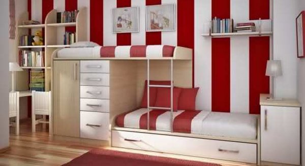 Для экономии пространства лучше использовать двухъярусные кровати – старое доброе решение, которое не теряет своей актуальности.