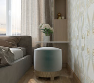 Интерьер решен в современном стиле, но с нотками ретро: мебель, светильники с дизайном, отсылающим нас к 60-м годам прошлого века. Использовали только самые необходимые предметы и отказались от большого количества декора: так небольшие комнаты остались просторными, но не скучными.