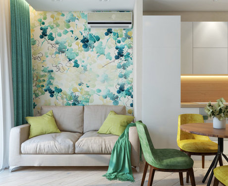 Все вертикальные элементы вытягивают помещение ввысь: можно заказать книжные стеллажи от пола до потолка, а можно просто повесить на окна длинные шторы.