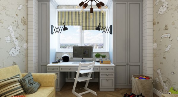 Первое время дети будут жить вместе, они двойняшки и очень привязаны друг к другу. Когда они подрастут, достаточно будет всего лишь поменять диван и кровать местами и разделить ребят по своим комнатам без ущерба для интерьера и кармана заказчика.