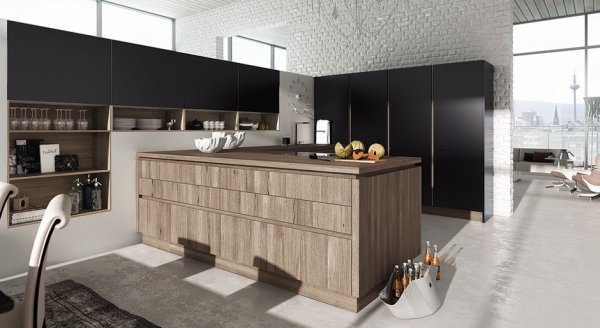 В двухкомнатной хрущевке можно расширить площадь за счет объединения кухни и примыкающей к ней комнаты в единую зону. В объединенной зоне кухни с гостиной можно расположить всю бытовую технику и напольные секции по дальней стене, а в центре за счет расширившегося пространства установить остров. Это позволит отказаться от части подвесных кухонных шкафчиков и тем самым визуально облегчить пространство. Одна часть острова может быть рабочей зоной, а другая служить обеденным столом, что также позволит разгрузить кухню от дополнительной мебели. Замена стола стойкой – другой удачный вариант распределения функциональной нагрузки, который также поможет не только сэкономить место, но и логично разграничить пространство.