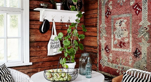 В лаконичном, простом, не перенасыщенном вещами интерьере нашлось место и для элементов индустриального стиля – светильники из магазина ИКЕА отлично вписались в общую картину и не спорят с такими наивными сельскими вещами, как выцветший бабушкин коврик, который, кажется, висит на стене лет сто.