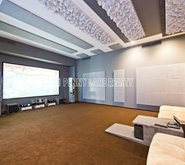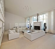 В квартире выполнена дизайнерская отделка. На первом уровне расположены холл, две гостиные, одна из которых оборудована как бар, кухня, столовая с морским аквариумом, остекленная терраса с камином, кинотеатр, санузел и постирочная.