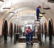 Субботники, весенняя уборка, обновление и покраска захватили российские города. В «Музеоне» устроили головомойку памятникам, для сорокаметрового Гагарина понадобилась спецтехника, а теперь можем посмотреть, как наводят блес к московском метро. Одна из самых позитивных фотогалерей на эту тему — «Как отмывают Москву к весне». Там фонари, яркое весеннее небо и радость от того, что закончилась темнота. Сегодня — фотогалерея агентства городских новостей «Москва» о том, как отмывают одну из старейших станций московского метро. Как моют московское метро