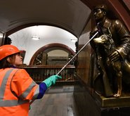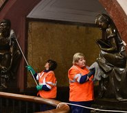 Субботники, весенняя уборка, обновление и покраска захватили российские города. В «Музеоне» устроили головомойку памятникам, для сорокаметрового Гагарина понадобилась спецтехника, а теперь можем посмотреть, как наводят блес к московском метро.