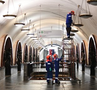 Субботники, весенняя уборка, обновление и покраска захватили российские города. В «Музеоне» устроили головомойку памятникам, для сорокаметрового Гагарина понадобилась спецтехника, а теперь можем посмотреть, как наводят блеск в московском метро. Одна из самых позитивных фотогалерей на эту тему — «Как отмывают Москву к весне». Там фонари, яркое весеннее небо и радость от того, что закончилась темнота. Сегодня — фотогалерея агентства городских новостей «Москва» о том, как отмывают одну из старейших станций московского метро. Как моют московское метро
