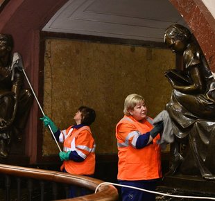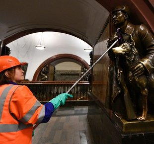 Субботники, весенняя уборка, обновление и покраска захватили российские города. В «Музеоне» устроили головомойку памятникам, для сорокаметрового Гагарина понадобилась спецтехника, а теперь можем посмотреть, как наводят блеск в московском метро.