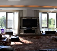Квартира трехсторонняя, окна с панорамным остеклением выходят во двор-атриум, на живописный парк и на пруд.