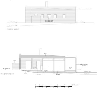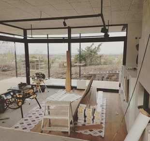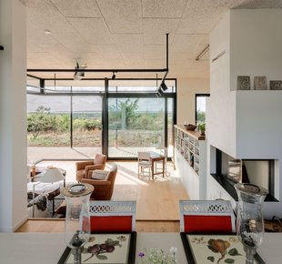 Однако, рассмотрев различные варианты, предложенные архитекторами, заказчики скорректировали свои планы. Из всего предложенного они одобрили проект одноэтажного здания в модернистском стиле в духе середины прошлого века. Спустя два года работ на живописном склоне появился дом площадью 100 м.