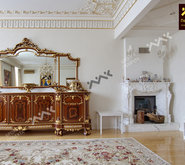 Четырехкомнатная квартира с дворцовыми интерьерами аходится на четвертом этаже шестиэтажного дома, расположенного на одной из самых зеленых улиц центра города. В пяти минутах ходьбы — Таврический сад, развлекательный комплекс с крытым катком. Из окон квартиры открывается романтичный вид на тихую улицу, городские крыши, зелень скверов и парков. Уникальный авторский дизайн в модном сейчас стиле барокко.