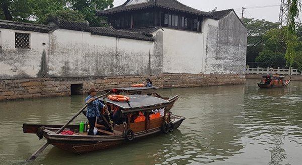 Старый город Сучжоу разрезают каналы, по которым плавают туристические плоскодонки с кормовым веслом. На веслах стоят женщины, катают туристов и поют китайские песни — прямо ориентальная Венеция.