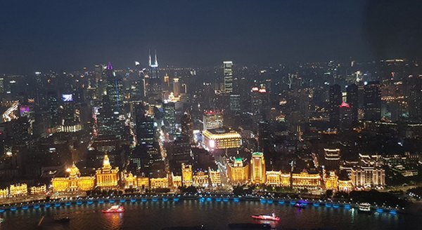 Последний китайский вечер мы провели самым романтичным образом — прогулкой вдоль реки Хуанпу по шанхайской набережной Вайтань. На здании банка, похожем на московскую высотку, но пониже «ростом», развевается большой подсвеченный китайский флаг, издалека неотличимо похожий на советский: на секунду испытываешь очень странное чувство погружения в прошлое, как уже не впервые в Китае. Такие же флаги венчают и все здания, когда-то построенные британцами.