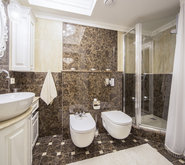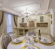 Главной особенностью пентхауса, безусловно, являются его видовые характеристики: окна в пол, обращенные практически на все стороны света. Пространство квартиры украшает красивая итальянская мебель отделка из мрамора и оникса.