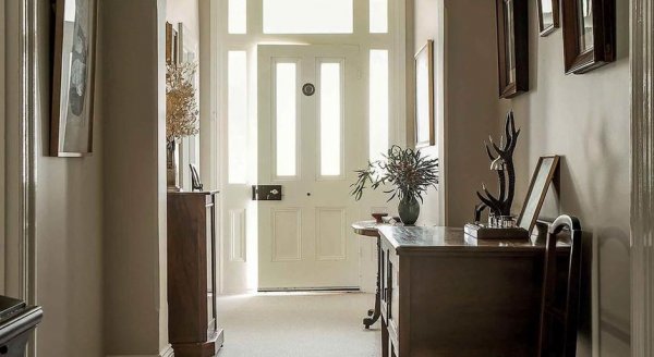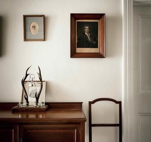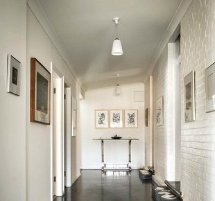 В спальне оставили декоративный камин — он придает интерьеру особый уют и напоминает о том, что это не просто дом, а старинная усадьба. А в прихожей оставили старинную мебель XIX века. Одну из стен украшает портрет женщины, выполненный неизвестным тасманским художником. И даже изображение в рамке на комоде взято из французского журнала той же эпохи.