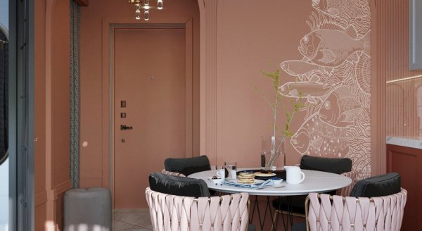 Цветовая палитра — самая важная составляющая объекта, его фишка. «У заказчицы не было явных предпочтений: как истинный творческий человек она видит красоту в каждом цвете. Поэтому мы решили выбрать самые необычные цвета и не прогадали», — рассказывает дизайнер. В итоге в отделке сделали акцент на яркую, но не кричащую цветовую гамму. Основная часть работ заключалась в покраске стен, поскольку с краской проще добиться нужного цветового оттенка. Получилось интересно: так, как и хотела заказчица.