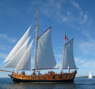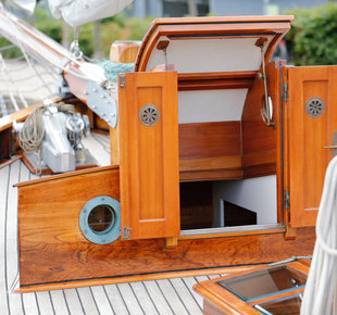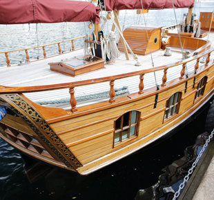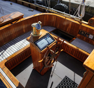 Парусник построен из ценных пород дерева и оборудован самыми современными системами навигации.