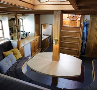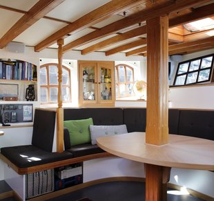 Во всех предметах мебели и деталях чувствуется мастерский подход и любовь к своему делу. В целом получилось жилище на плаву, комфорт и уют которого нисколько не уступает загородному дому.