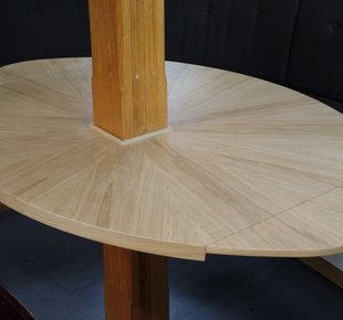 Вдоль стен тянутся многочисленные системы хранения — это около пятидесяти встроенных шкафчиков, сделанных из массива дуба под заказ. Остальная мебель также изготавливалась по индивидуальному проекту.