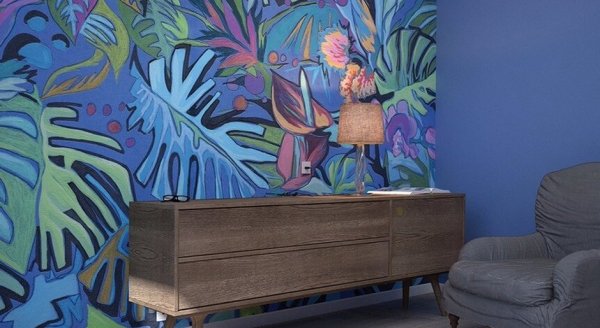 Первое, что необходимо сделать — определить, как скомбинировать обои в комнате правильно. При этом желательно опираться не только на личные предпочтения, но и на размеры помещения, ровность стен и даже освещение. Однако ставить мебель на фоне крупного рисунка не рекомендуется: во-первых, принт «потеряется», а во-вторых, такое сочетание может визуально сузить пространство. Важно, чтобы расстояние до акцентной стены было не менее 3-4 метров. В таком случае картинка будет видна полностью.