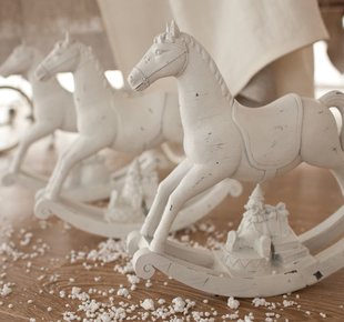 Чаепитие на свежем воздухе. Как романтично! Но проводить ритуал на улице - это слишком, - решила дизайнер Лада Подольская и организовала место для этой части новогодних застолий на летней веранде. Здесь хорошо освежиться, но замерзнуть - едва ли удастся. Веранда белым-бела, как и сугроб за окном. Это новогодняя зона свежести для разгоряченных гостей, а также для тех, кто не решился выйти на улицу, но не прочь ощутить чарующий контраст зимней стужи и чашки горячего чая Стол декорирован выполненными из дерева желудями и веточками лаванды. Букет из веток расцвечен нарядными елочными игрушками, украшенными искусной росписью Интересное решение дизайнер нашла для оформления потолка веранды: он задрапирован полотном полиэтилена, волны которого напоминают опрокинутые над головой пышные сугробы В «царстве Снежной королевы» морозцем не тронуты лишь яблоки. Они настоящие и подвешены на нити под потолком над столовой зоной. Маленькие барашки в вазах напоминают о рождественском чуде. : спальни, гостиные, детские, прихожие и другое