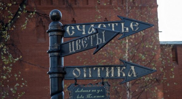 Российским городам тоже есть, чем похвастаться. Один из указателей Йошкар-Олы, например, указывает направление не только к магазину цветов и оптике, но и путь к счастью. Что обнаружат смельчаки, решившие испытать судьбу и пойти указанной дорогой, ни местные, ни туристы, не рассказывают. Да и правильно, ведь счастье у каждого свое.