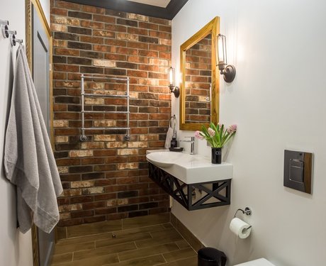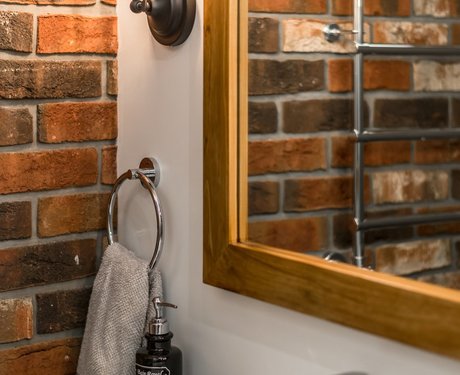 «Сделать дом удобным помогла грамотная перепланировка, — рассказывает дизайнер Мария Наседкина. — Гараж отсекли от общей территории дома, перенесли лестницу и кухню, переорганизовали второй и цокольный этажи». Теперь у хозяев имеется по отдельному кабинету, появились просторные общественные зоны, большая библиотека и домашний кинотеатр. В оформительских решениях ориентировались на стиль лофт. «Мы постарались адаптировать эстетику обжитых американских промышленных зданий к небольшой площади дома», — говорит Илья Насонов, архитектор и основатель NasonovDesignWerke. Чтобы придать интерьеру брутальности, некоторые стены отделали плоским клинкерным кирпичом, собрали индустриальную мебель и декор и выделили камин. Когда настала очередь выбирать для него отделку, оказалось, что эффектный мрамор или гранит, по словам Ильи, стоили «чудовищно дорого, а заказчик сетовал, что может остаться без развлечения на Новый год». Придумали отделать плиткой и мозаикой, как в гостевом санузле.