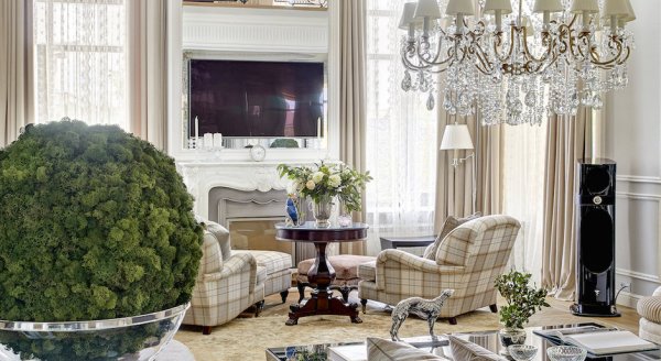 Заказчикам так полюбилась мебель американского бренда RALPH LAUREN HOME, что Татьяна не просто сделала на ней акцент, а выстроила вокруг неё интерьер. Нарядный, светлый фон (стены благородного, чуть разбелённого серого цвета, тонкая, изящная лепнина, хрустальные светильники) эффектно оттеняет добротную, элегантную классическую мебель.