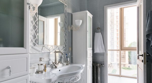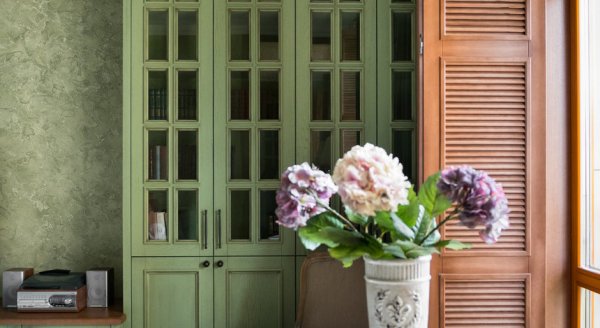 Большую часть мебели выполнили на заказ по эскизам автора проекта — это почти все встроенные шкафы, комоды, кованные детали и мебель. Интересное решение — деревянные ставни в сочетании с традиционными шторами: они создают в интерьере отпускную атмосферу. Их тоже изготовили специально для этой квартиры.
