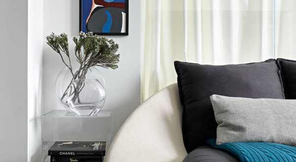 В этом интерьере много оригинальных авторских решений: даже картины и те написаны Ольгой Черненко специально для него. Ольга говорит, что будущий интерьер всегда видит целиком, от планировки до мебели и аксессуаров, и в качестве стилиста на съёмке всегда выступает сама: «Кто лучше меня знает этот интерьер?»