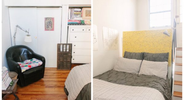 Обустроиться в крохотной съемной квартире — задача не из лёгких. Хозяин этих апартаментов сумел не только вместить в 42 кв. м кухню, гостиную, рабочее место и спальню, но и сделать жильё по-настоящему своим Эту совсем небольшую по меркам Нью-Йорка квартирку её нынешний арендатор снимает уже более четырёх лет. За это время молодой человек с лаконичным именем СВ окончил Нью-Йоркский университет и получил удалённую работу, которая потребовала особого подхода к декорированию. С одной стороны, интерьер не должен был отвлекать в рабочее время, с другой — должен был помогать расслабляться в те светлые моменты, когда с делами покончено. Хозяин квартиры изучил множество интерьерных сайтов и сделал вывод, что стандартного решения он не найдёт, а значит, придётся всё придумывать самостоятельно. Обустроить полноценный офис на 42 кв. м — задача практически невыполнимая, поэтому молодой арендатор пошёл по пути наименьшего сопротивления и просто поставил рабочий стол в угол. Дабы как-то выделить эту зону на фоне другой мебели, также стоящей вдоль стены, хозяин постелил небольшой коврик, а прямо над рабочим столом повесил несколько бумажных потолочных светильников. Молодой человек признался, что больше всего в этой квартире ему не нравятся белые стены, которые в соответствии с договором аренды категорически нельзя красить. Из положения он вышел с помощью декора: предметы его многочисленных коллекций — карты, плакаты, фотографии, марки, открытки, журналы и постеры — равномерно распределены по стенам квартиры и вполне успешно отвлекают внимание от белого безмолвия штукатурки, попутно рассказывая историю самого хозяина. А о чём ещё можно мечтать в съёмной квартире? : спальни, гостиные, детские, прихожие и другое.