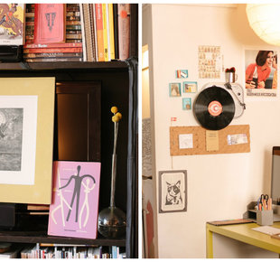 Из положения он вышел с помощью декора: предметы его многочисленных коллекций — карты, плакаты, фотографии, марки, открытки, журналы и постеры — равномерно распределены по стенам квартиры и вполне успешно отвлекают внимание от белого безмолвия штукатурки, попутно рассказывая историю самого хозяина. А о чём ещё можно мечтать в съёмной квартире?