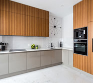 В планировке от застройщика спальня оказалась очень узкой, а один из санузлов — крошечным. Дизайнер быстро нашла решение: скорректировала помещение за счет шкафов и коридора Вкратце В результате перепланировки в двухкомнатной квартире появились гостиная со столовой и кухня за стеклянными перегородками, а спальню оставили изолированной. Помимо двух санузлов здесь поместилось много систем хранения. Некоторые из них — с секретом. Подробности Этот проект — уже не первая совместная работа заказчиков и дизайнера. В этот раз Ольгу Иванову попросили оформить просторную квартиру для сдачи: нужен был интерьер, который придется по душе молодому бизнесмену или паре без детей. «Спальня по плану была непропорционально узкая и вытянутая, с капитальными стенами, из-за которых перепланировка невозможна, — рассказывает дизайнер. — Чтобы скорректировать пространство, установили проходной встроенный шкаф, а лоджию переоборудовали в кабинет. Между гостиной и кухней установили прозрачные стеклянные перегородки — проем здесь уже был». Для отделки гостиной использовали декоративную штукатурку, в спальне для акцентной стены выбрали гипсовые 3D-панели, все остальные стены покрасили. На полу — широкополосная паркетная доска, в прихожей, кухне и санузлах положили керамогранит. Для лоджии отлично подошла кварцвиниловая плитка — она долговечная и ударопрочная и легко укладывается. Для хранения основного объема вещей спроектировали вместительную гардеробную в прихожей, также шкафы есть в спальне и в коридоре. Чтобы использовать пространство максимально, их сделали до потолка. Второй санузел увеличили за счет коридора и разместили в нем шкаф для хранения бытовой химии и стиральную машину с функцией сушки. Интересное решение дизайнер нашла для прихожей: панель-вешалка в прихожей откатная — за ней спрятаны электрощиток, коллекторная и щиток слаботочки. В основе интерьера — сочетание теплых и холодных оттенков (серого с золотом), они присутствуют во всех помещениях, за счет чего квартира воспринимается «цельной». «Всю корпусную мебель нам изготовили в нужных цветах на заказ. Это же касается дивана, прикроватных тумб, банкетки и кровати. А вот декор и мелкую мебель вместе с заказчицей мы выбирали в шоу-румах и в интернете. Вместе все предметы смотрятся гармонично и стильно», — говорит Ольга Иванова. : спальни, гостиные, детские, прихожие и другое.