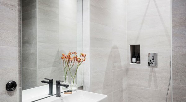 Даже в санузле имеется несколько источников света: точечные потолочные светильники и лампа у зеркала. Благодаря хорошему искусственному освещению удалось почти полностью избавиться от темных углов в квартире (а ведь они, как мы помним, съедают пространство).